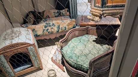 Das Schloss selbst hat noch einen Großteil sein ursprüngliches Mobiliar und seine Dekoration bewahrt. Familienbilder neben Spieltischen, Hundehütten und Automaten sind zu entdecken.