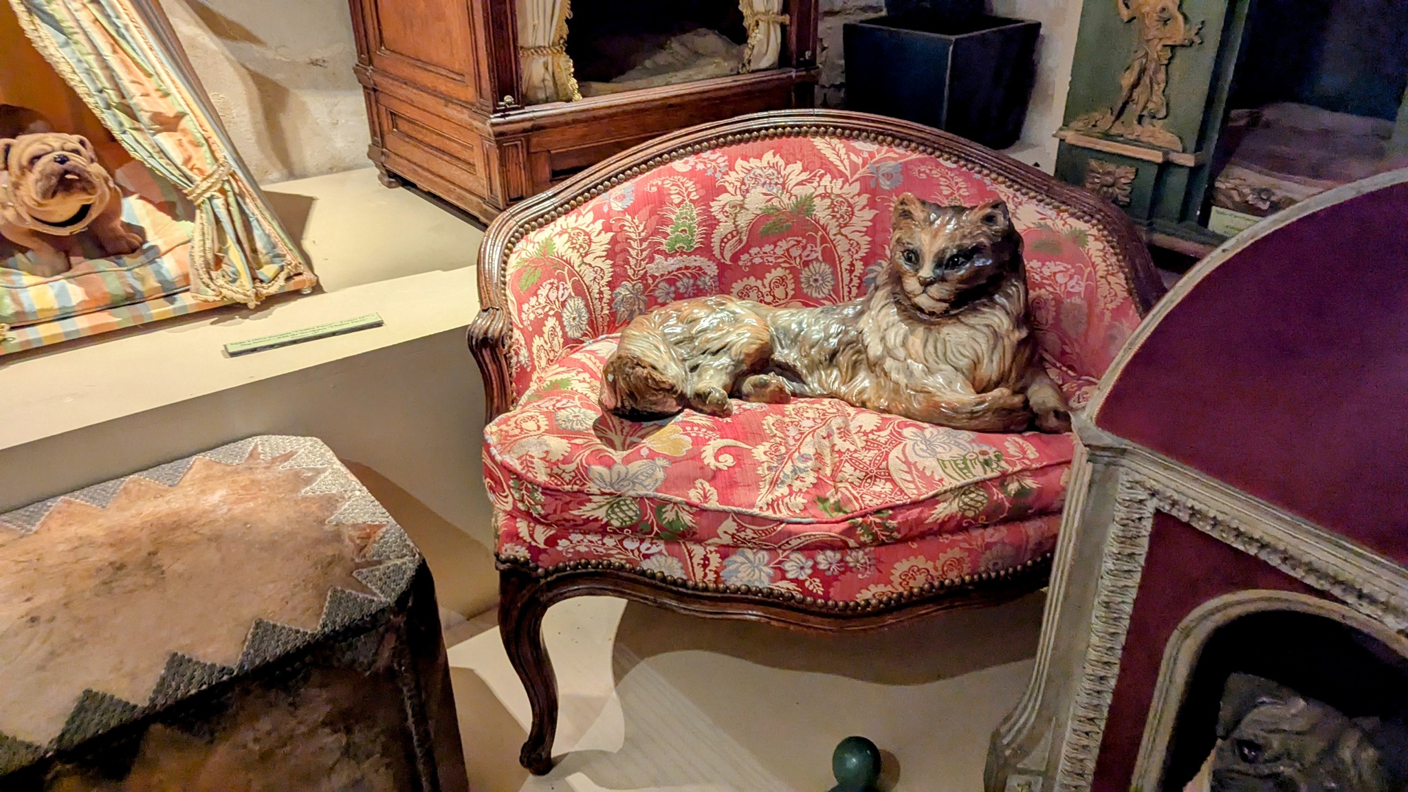 Das Schloss selbst hat noch einen Großteil sein ursprüngliches Mobiliar und seine Dekoration bewahrt. Familienbilder neben Spieltischen, Hundehütten und Automaten sind zu entdecken.