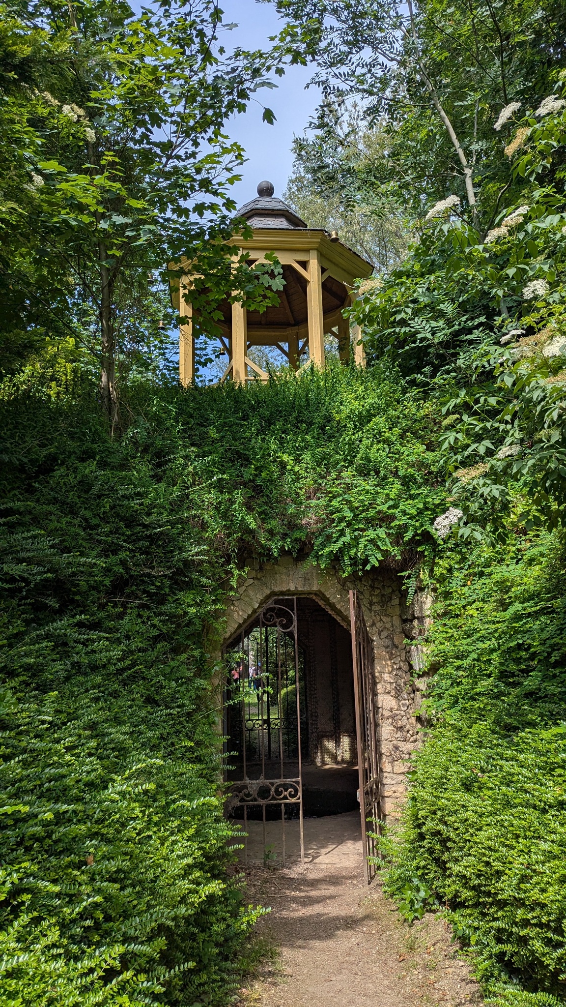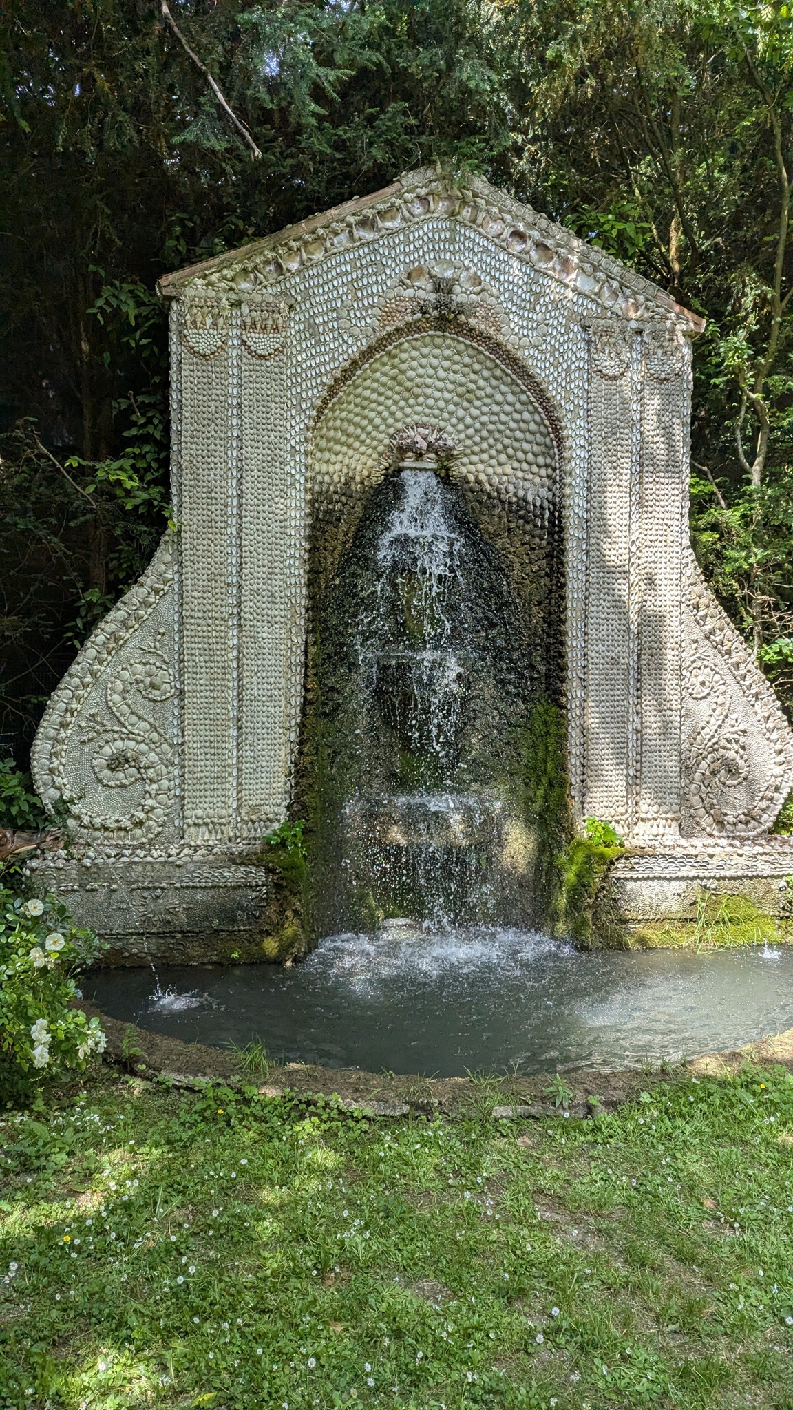 Durchzogen wird der ganze Garten von einem malerischen Bach, kleinen Teichen und vielen kleinen versteckten Juwelen wie die Grotte mit den unendlich vielen Muscheln.